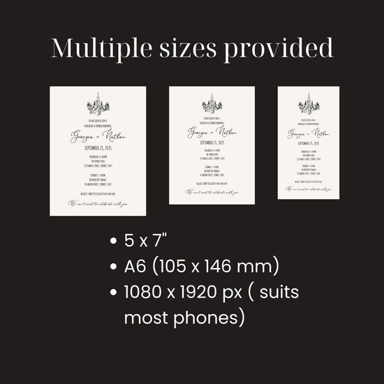 Our designs are in standard AU/US/ International sizings. You can access our template instantly and design a custom invitation with your own words to share with friends and family.