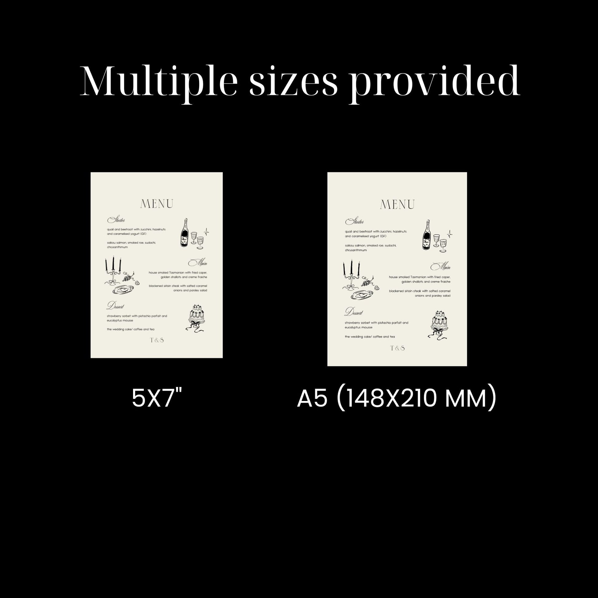 • Hand-drawn Retro-Inspired Wedding Menu A5 148x210 mm
