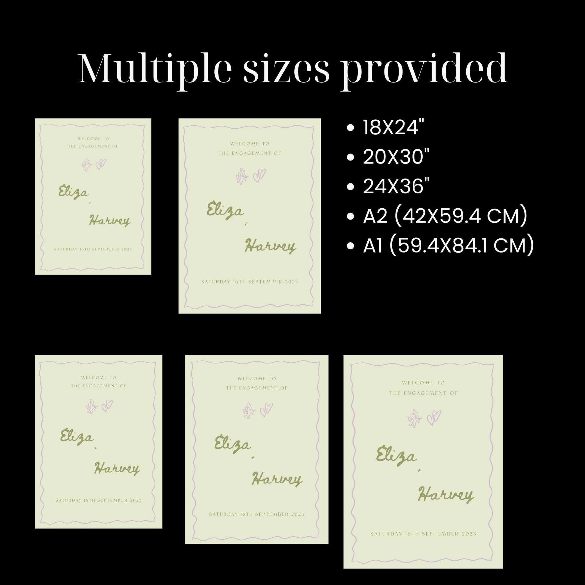 - Whimsical Sage Green Engagement Welcome Sign A2 - 42 x 59.4 cm